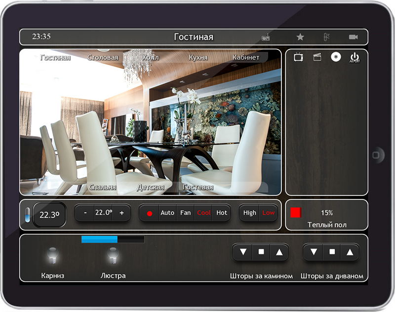 There are absolutely no limits with iRidium. Any graphic capabilities! Any control panel! Any functions!