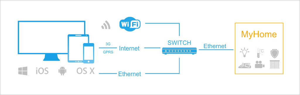 Integrate several automation systems with MyHome! You can make you customer happy by integrating MyHome with KNX, Modbus, Clipsal, etc.