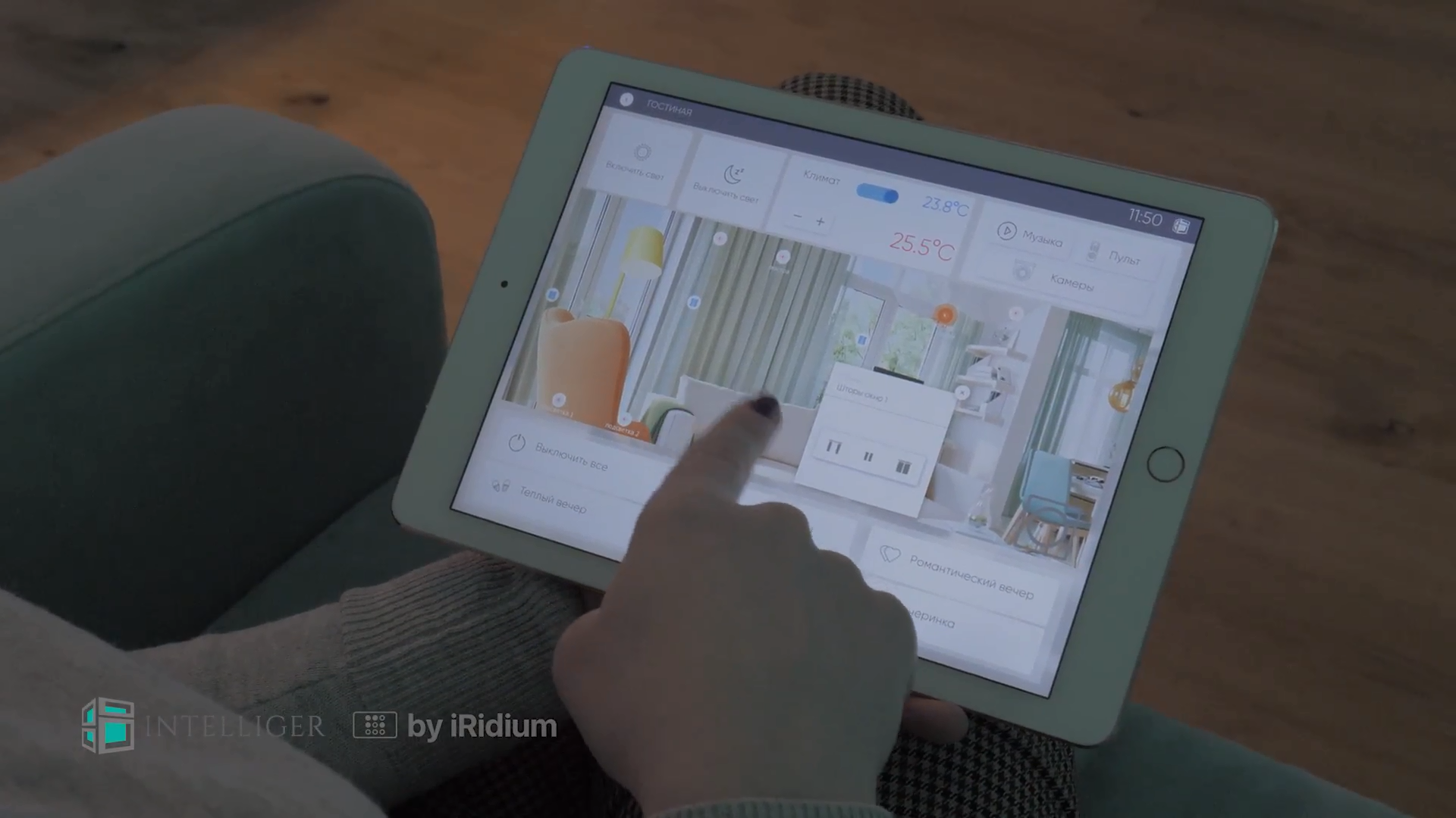 It’s an automation system on the basis of KNX protocol in a 3-room apartment. The automation system includes control of light, climate, blinds, music, TV-sets, a security system. A control interface is connected with all functions of Smart home, providing full control of the system both locally and remotely.