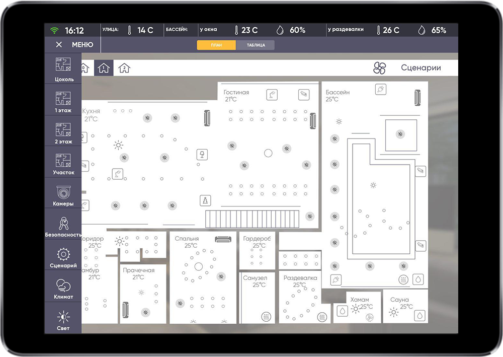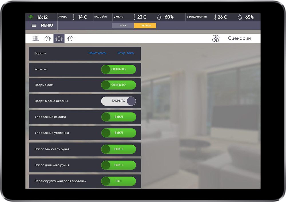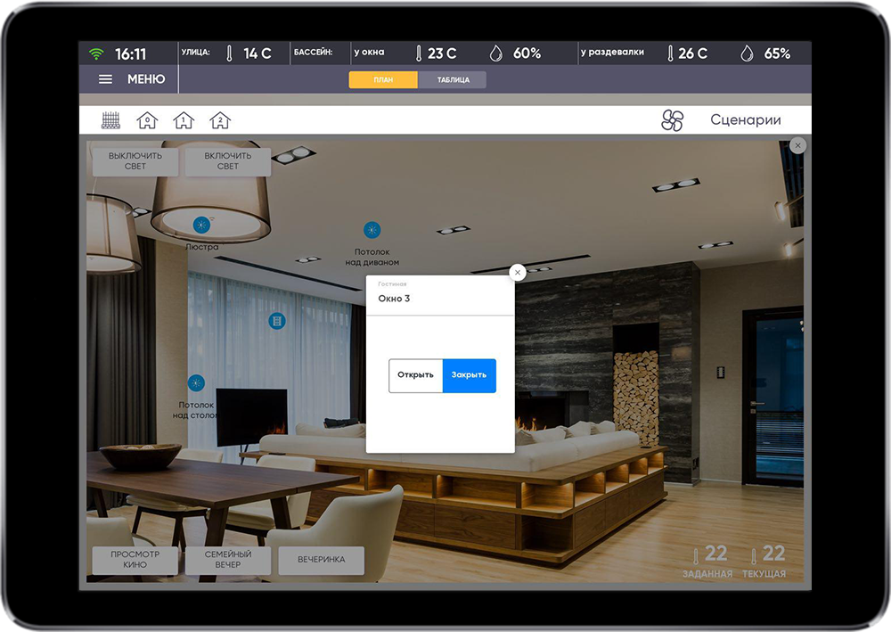 The main task was to realize simple control of comfort systems and single security control of the house and the surrounding territory.