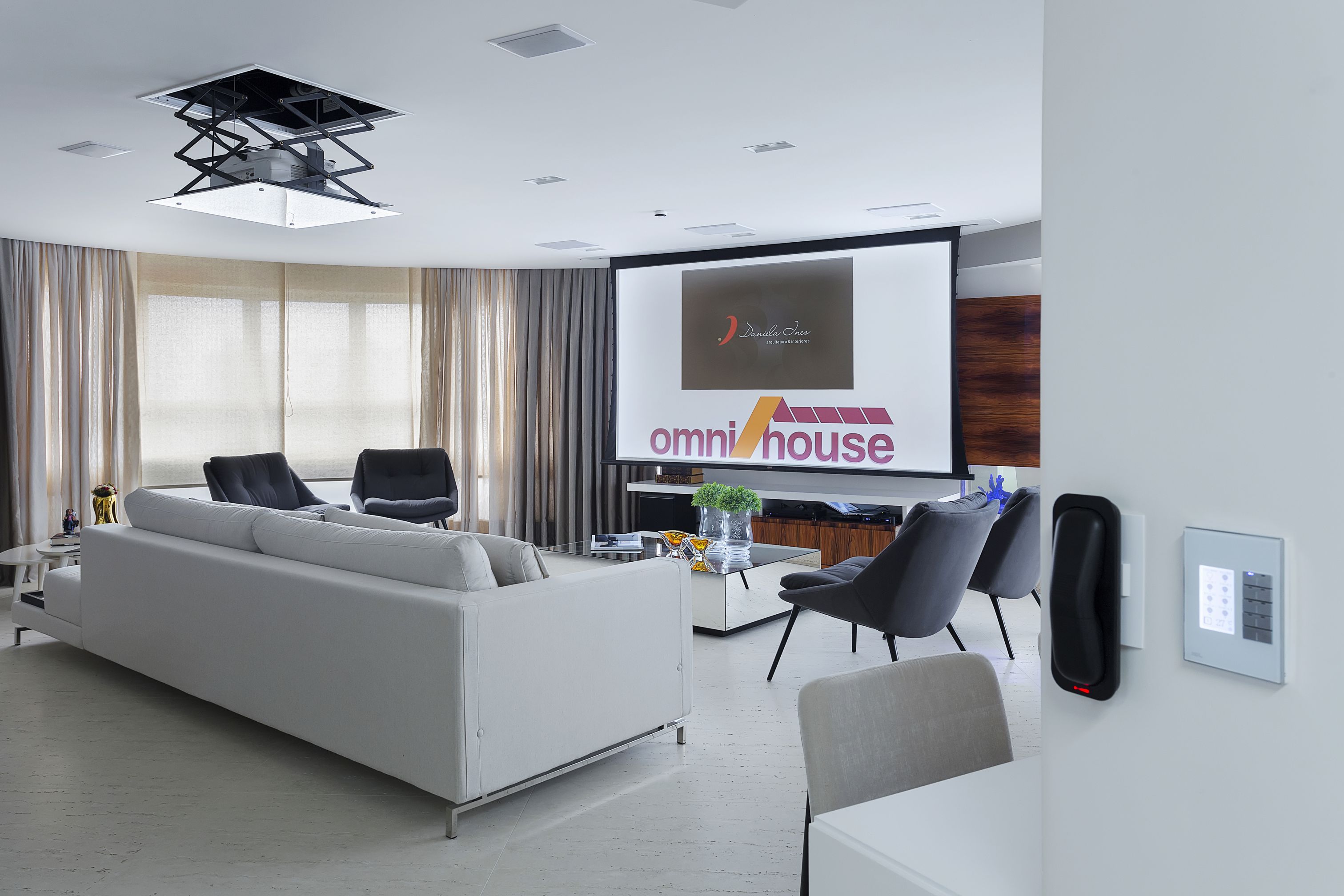 Control of A/V equipment, curtains, projector and screen, illumination and Air conditioning.
