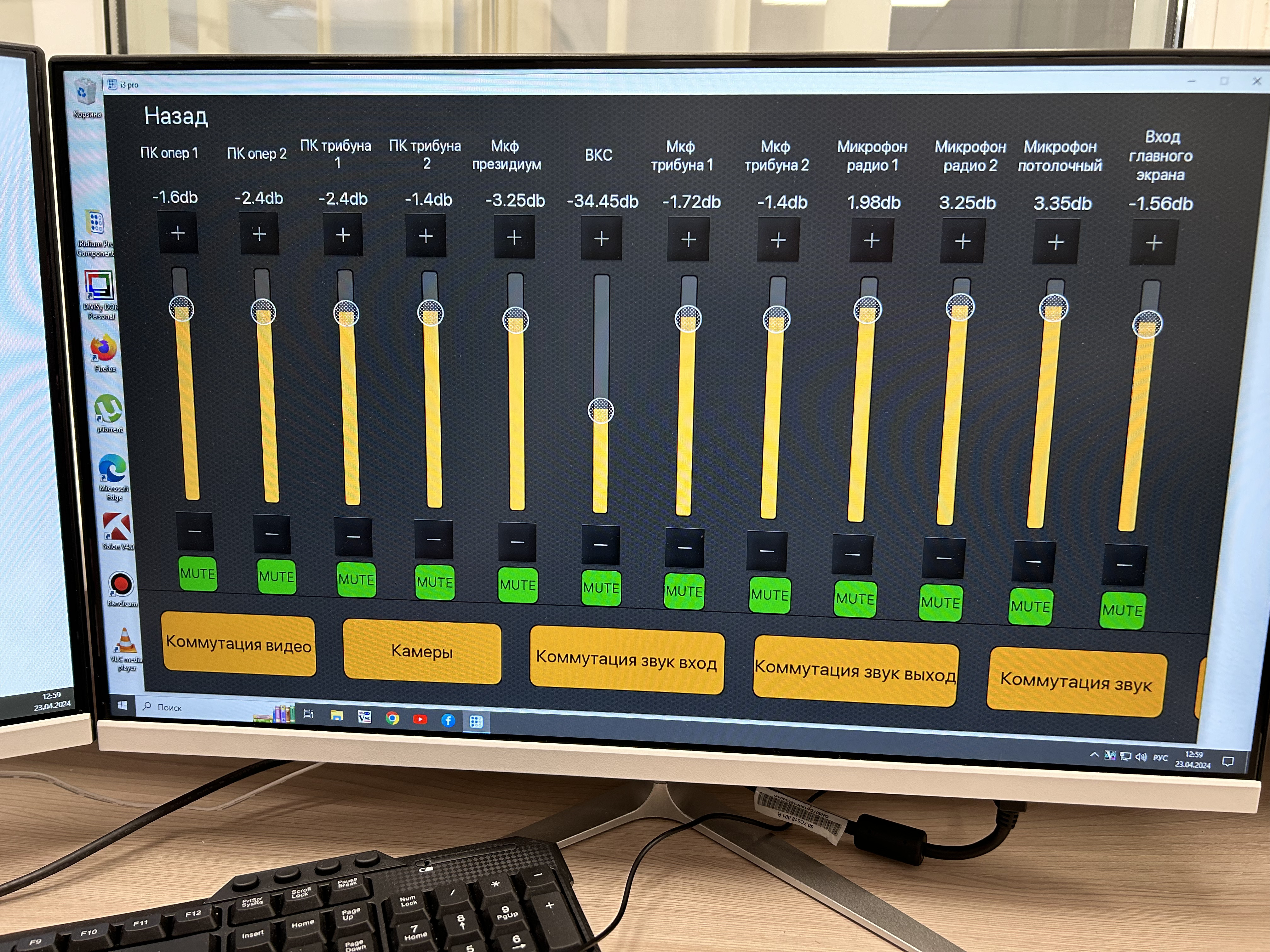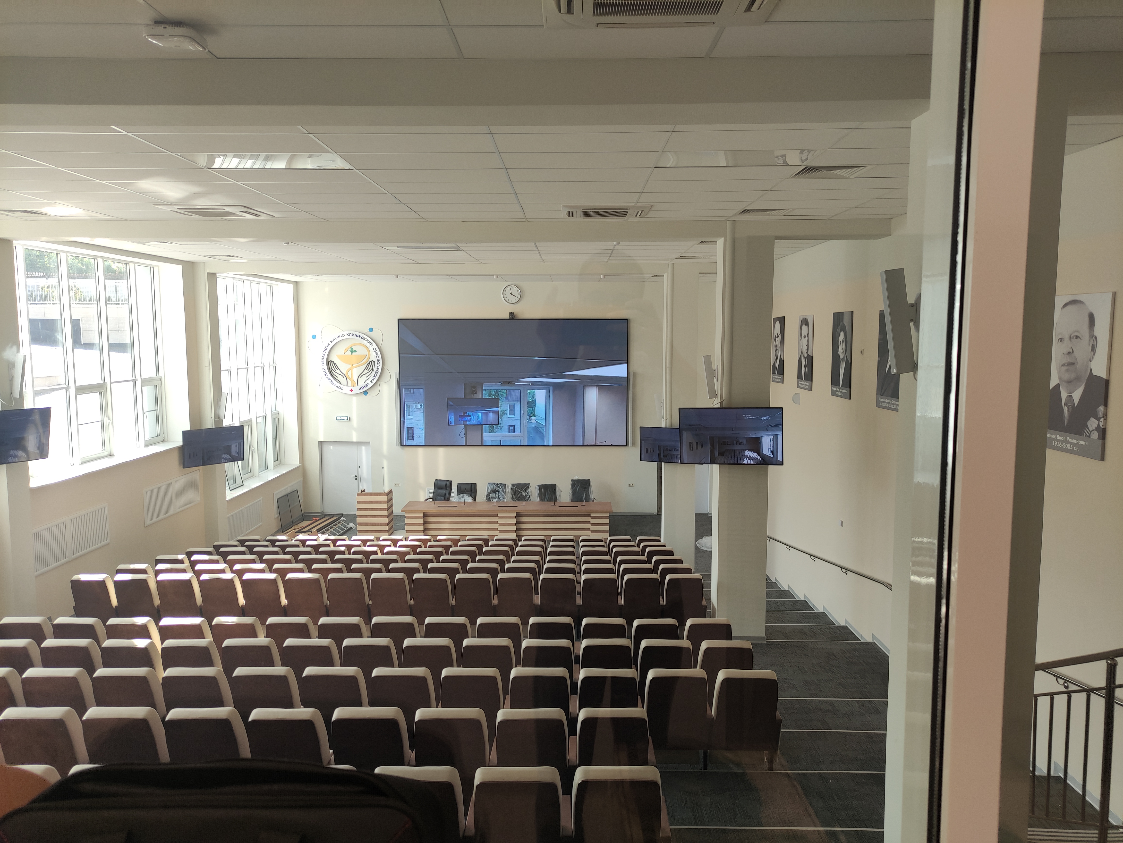 ✔️ видеоконфернц связь реализована на базе системы Panasonic KX-VC1000, PTZ-камерами Prestel для обеспечения высококачественных трансляций и граббером для проведения сеансов Телемост;
