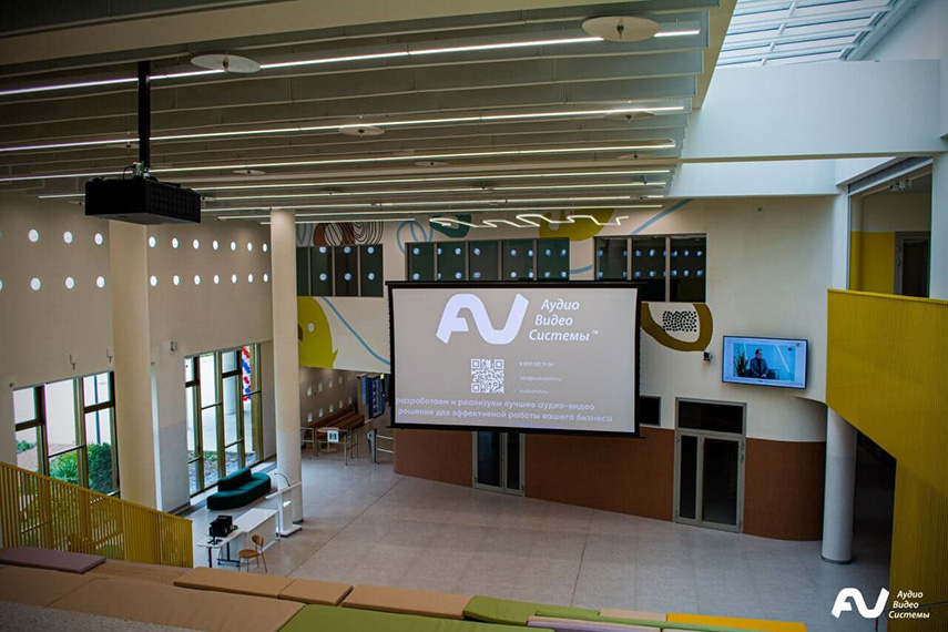 ✔️ Для закрытия окон, чтобы затемнить помещение, в левом и правом вестибюлях есть по 8 приводов с рулонными шторами. Управление экраном и шторами производится с беспроводного планшета.