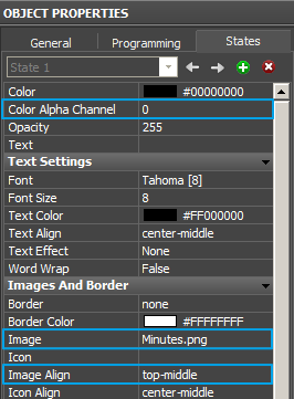 The image Minutes.png has smaller height than the item. In order to attach the image to the upper part of the item indicate top-middle