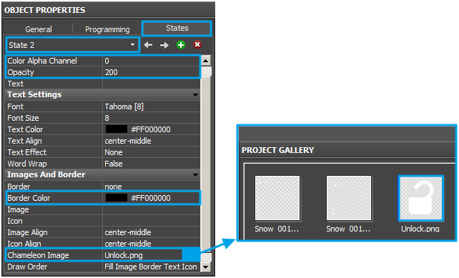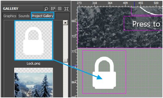 Add two more images for the Lock / Unlock button to the project (file Buttons) in the same way. We’ll need them in step 5.4.