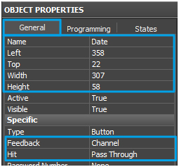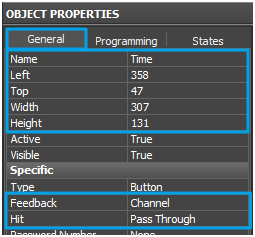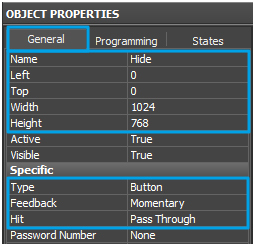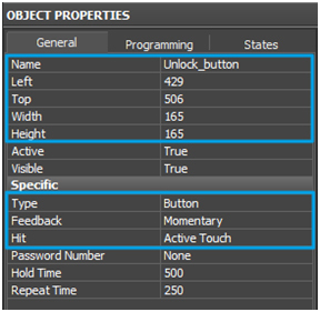 5.1. Create an item, name it Unlock_button and set the following parameters in Object Properties / General.