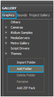 3.1. Open Gallery / Graphics, create a new folder and name it Screensaver with the help of Add Folder button.