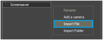 3.2. Open a menu in the right column of Screensaver Folder with the right mouse button and select Import File.