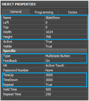 2.3. Add states to the item SlideShow with the help of Add State button in Object Properties / States. The number of states is determined by the number of photos for the slide-show in your project.