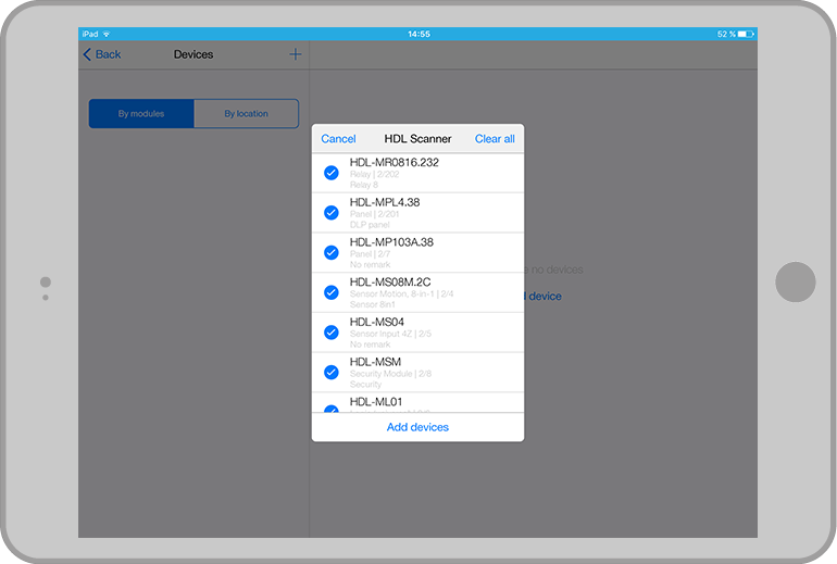 After you select devices and click the Add button, the system downloads modules for controlling selected equipment and displays them in the list.