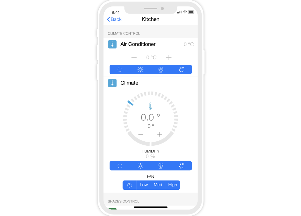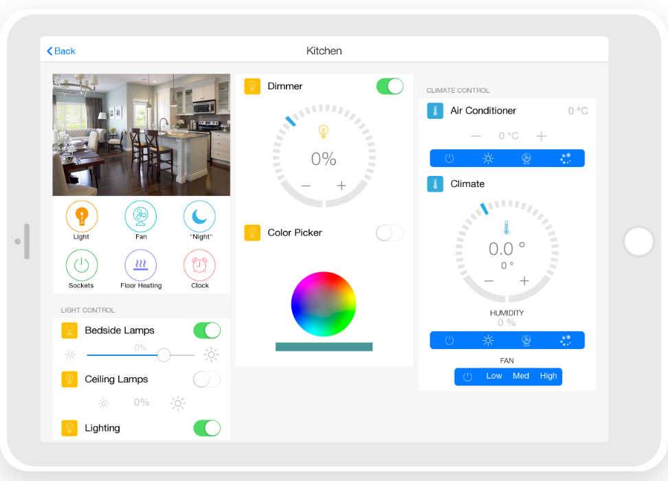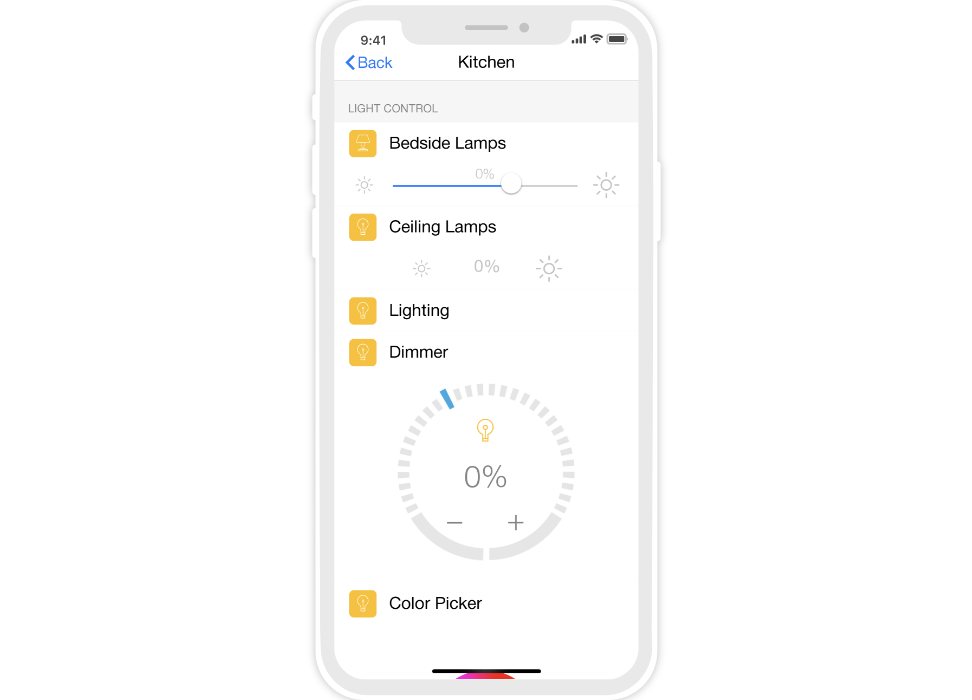 control widgets in rooms are united into functional groups;