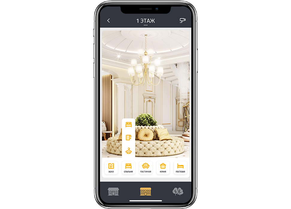 1. An exclusive iRidium interface was created for this purpose. It allows to control all functions and systems of the house. iRidium is used to control lighting, conditioning, heating, music, TV, IP TV, a projector, a projector screen, a lift for a ceiling lamp, pergolas, automatic plant watering, water fog, fire security system, video surveillance and a steam generator for hamam.