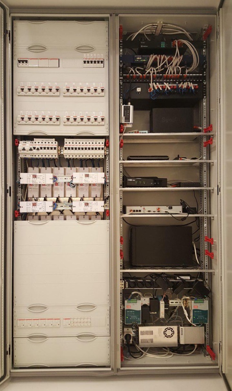 Complete automation of light control (simple change of scenes without programming), motion sensors must not be seen in the interior design, climate control (conditioners, input ventilation, electrical warm floors, exhaust fans), audio zones (including toilets). Creation of universal remotes for TV-sets, full accounting of resource consumption (water, electricity), including control of an automated door, installed in a tech room, into general scenes.