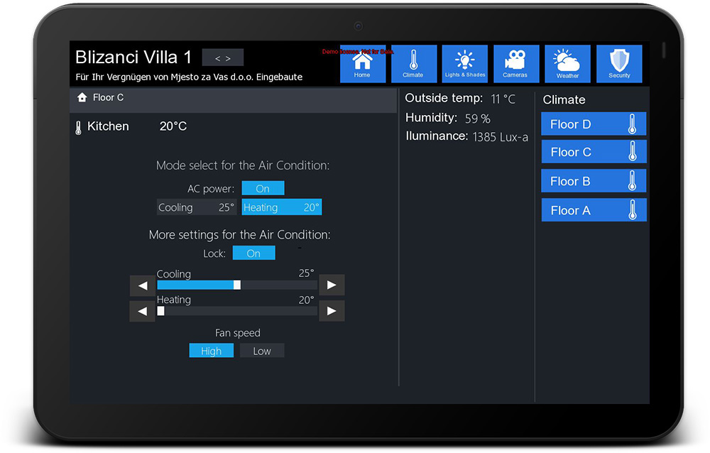 Lighting control, curtain control, AC control, security system and video surveillance integration.