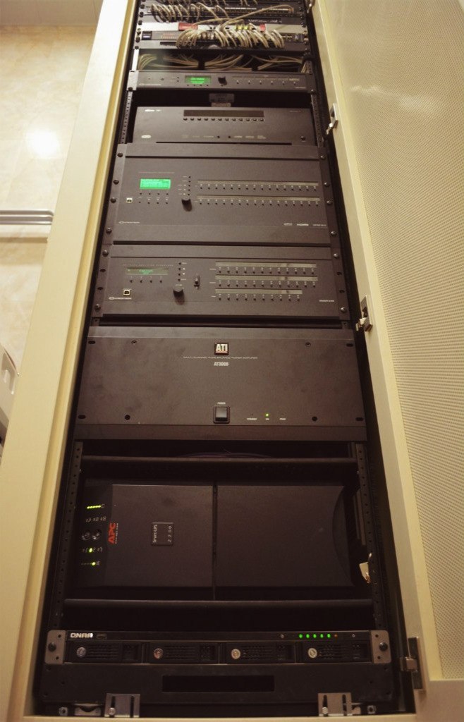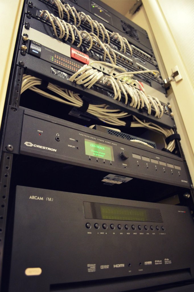 3. Sound sources for the multiroom system – Fm-radio, Internet-radio, media player, satellite receiver, Apple TV and airPort. All equipment is installed in the server stand.
