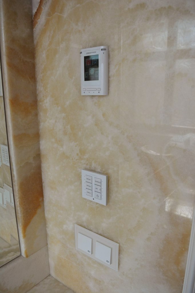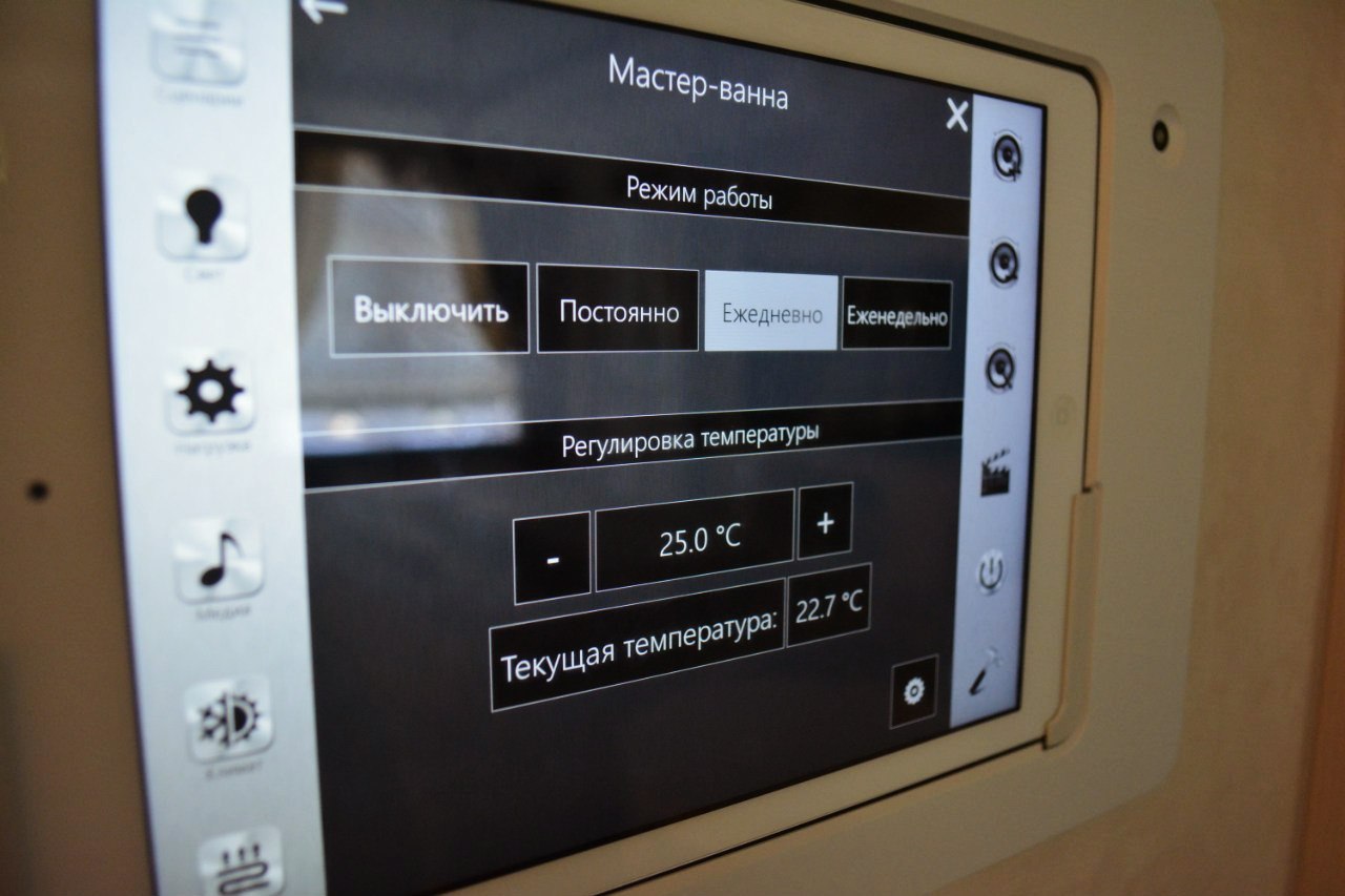 Temperature sensor in the kitchen displayed temperature higher than required. ARCAM AV950 didn’t always receive a command, to fix it an algorithm was realized that can determine that a command was not received and send a command one more time. LED-lamps bought by the customer did not dim well, so we changed the dimming modes in Crestron modules.