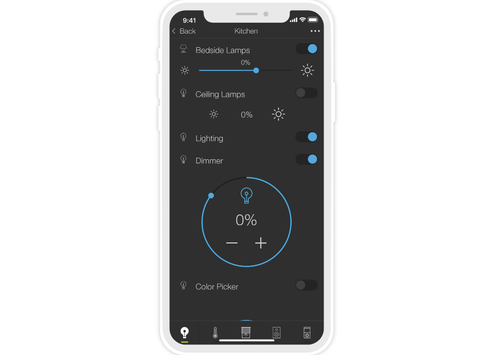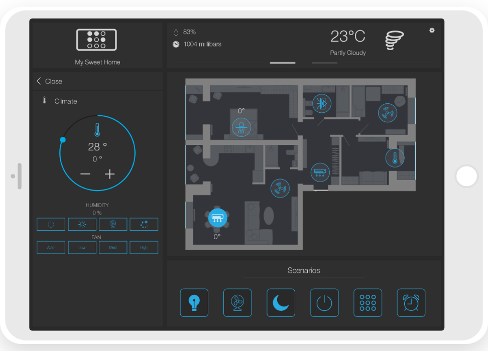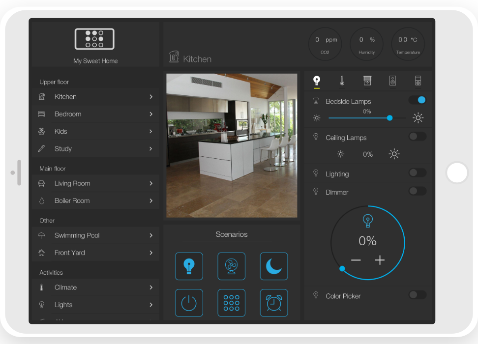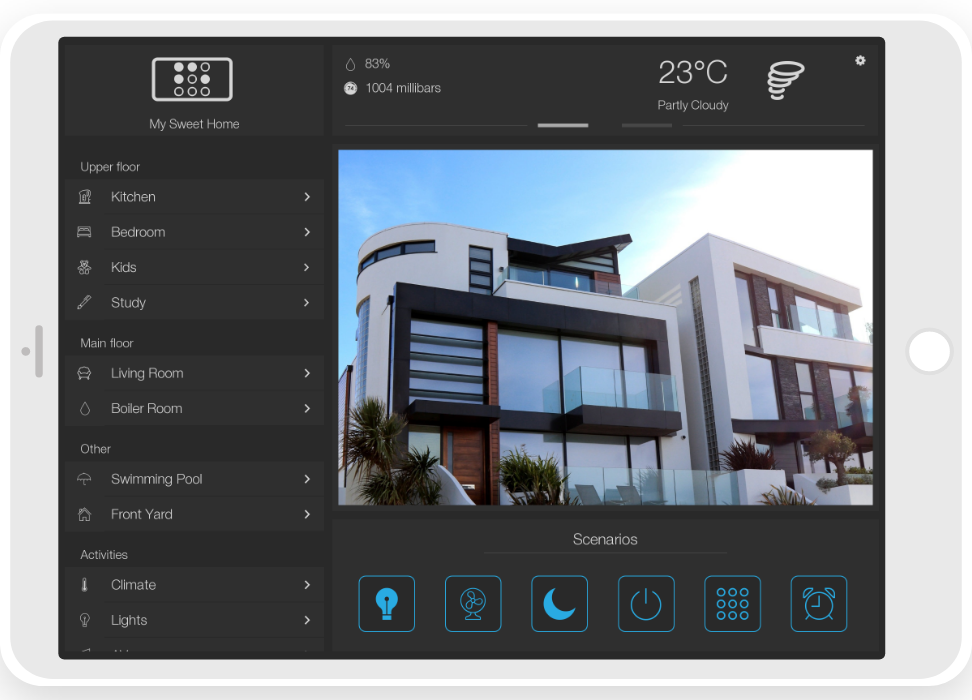 • ready widgets to control light, blinds (with animation), cameras, climate, Audio/Video equipment, scenes.