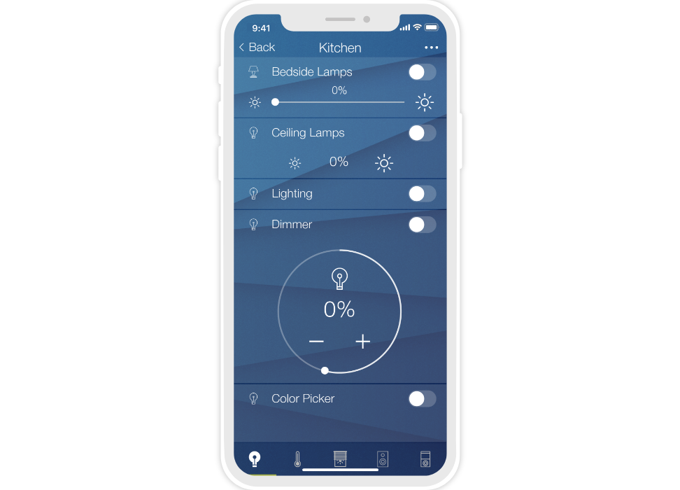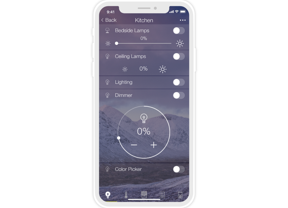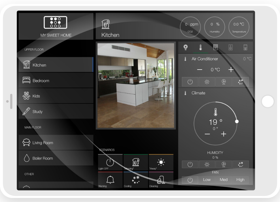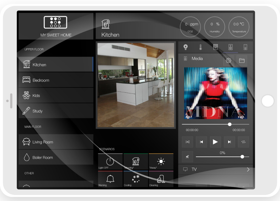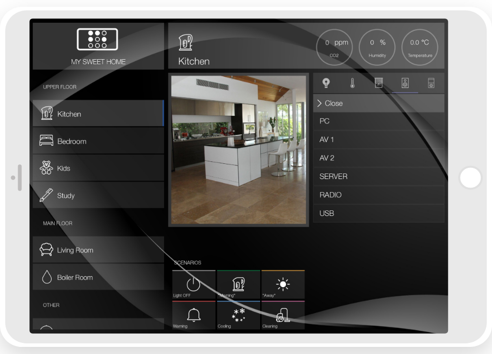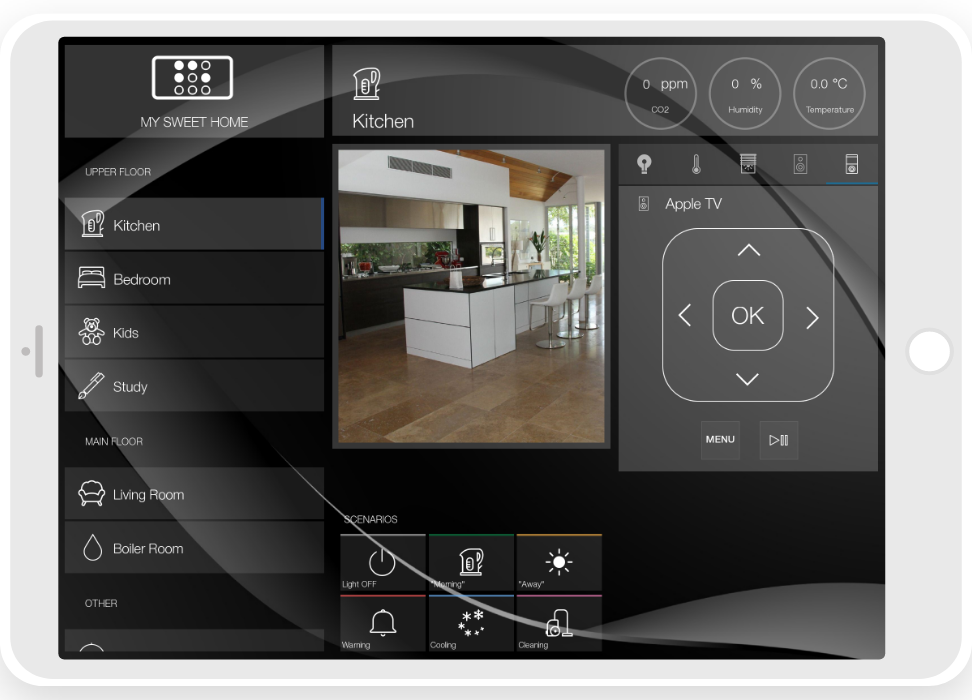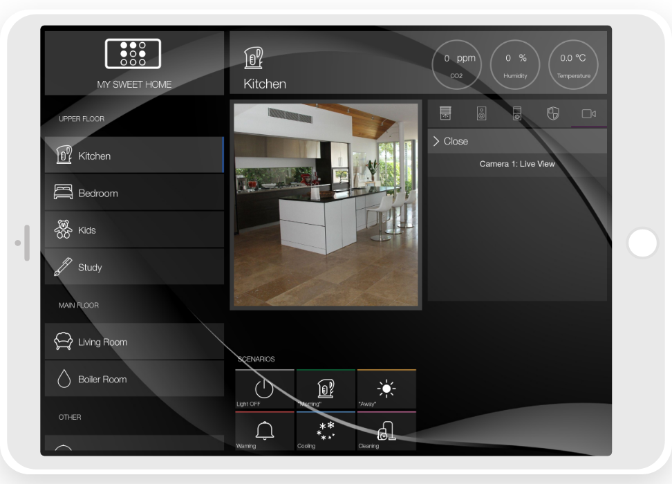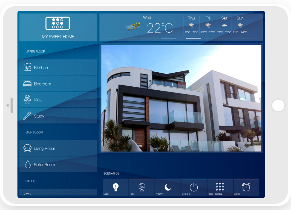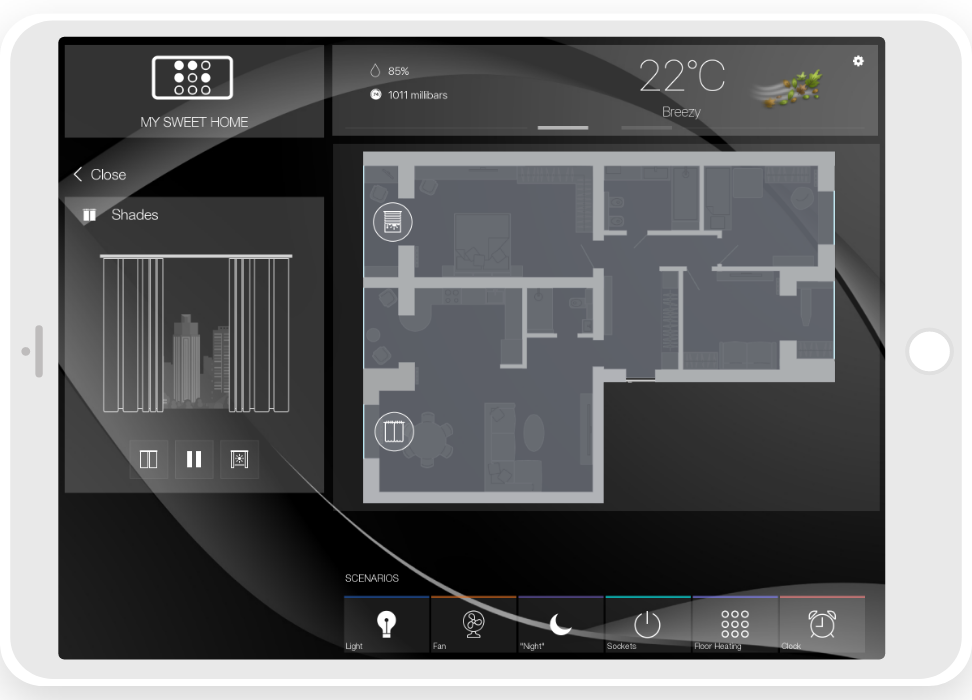 - ready widgets to control light, blinds (with animation), cameras, climate, Audio/Video equipment, scenes.