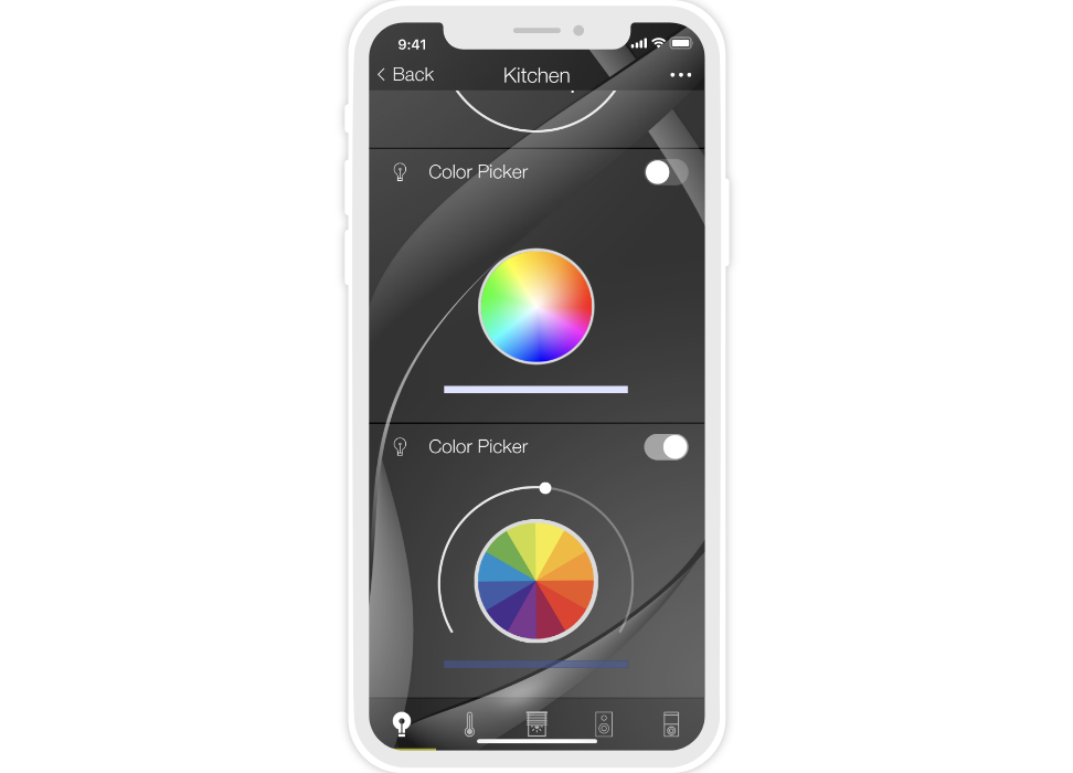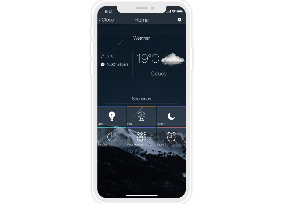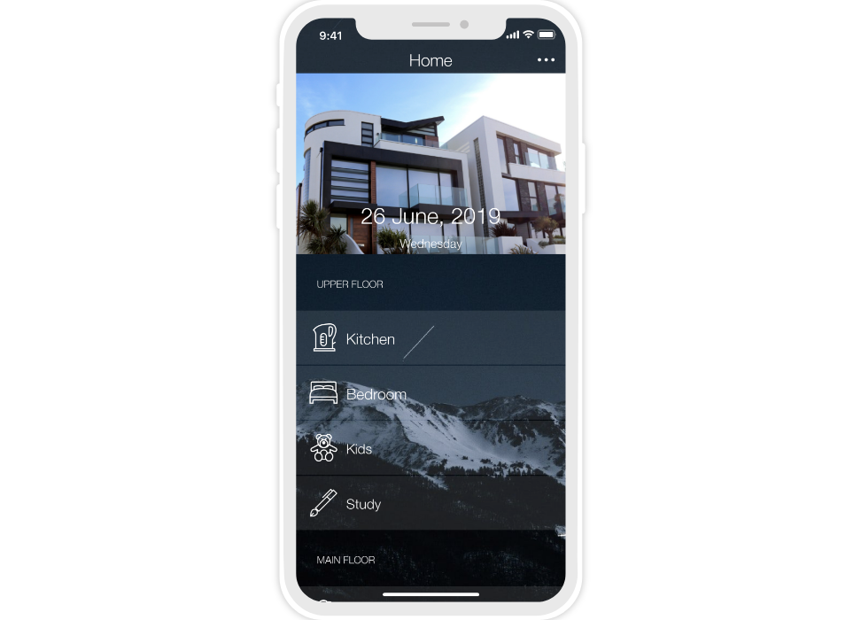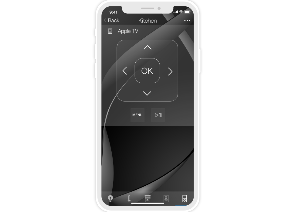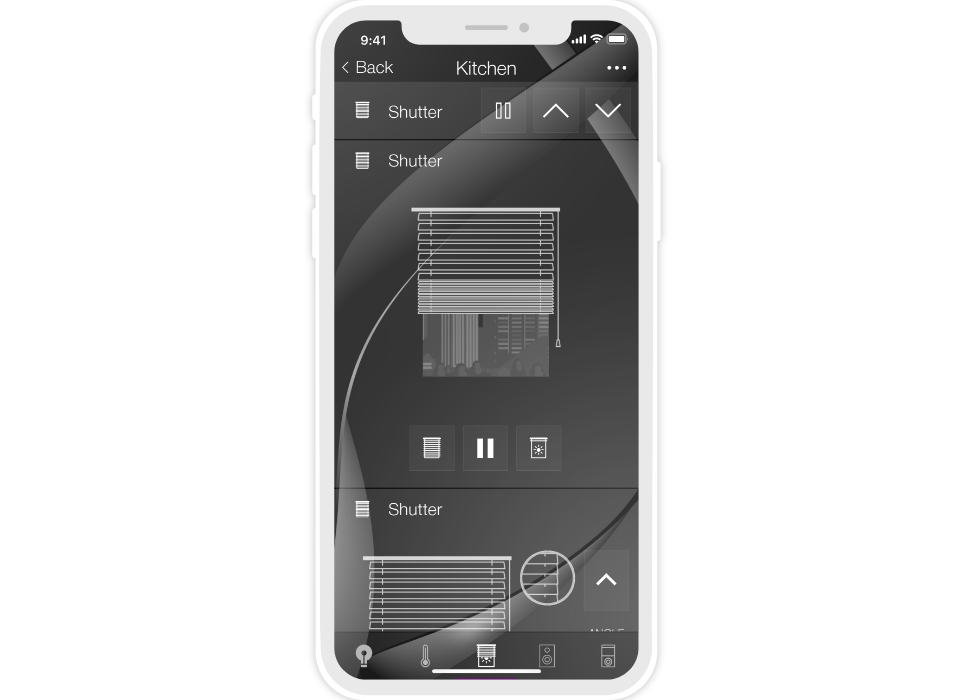 «Flex» is a dark semi-transparent style with a background image. There are 10 backgrounds to select from, but your own image can also be used. Thanks to the change of backgrounds (consequently the color) the interface can suit the design of any apartment or house.