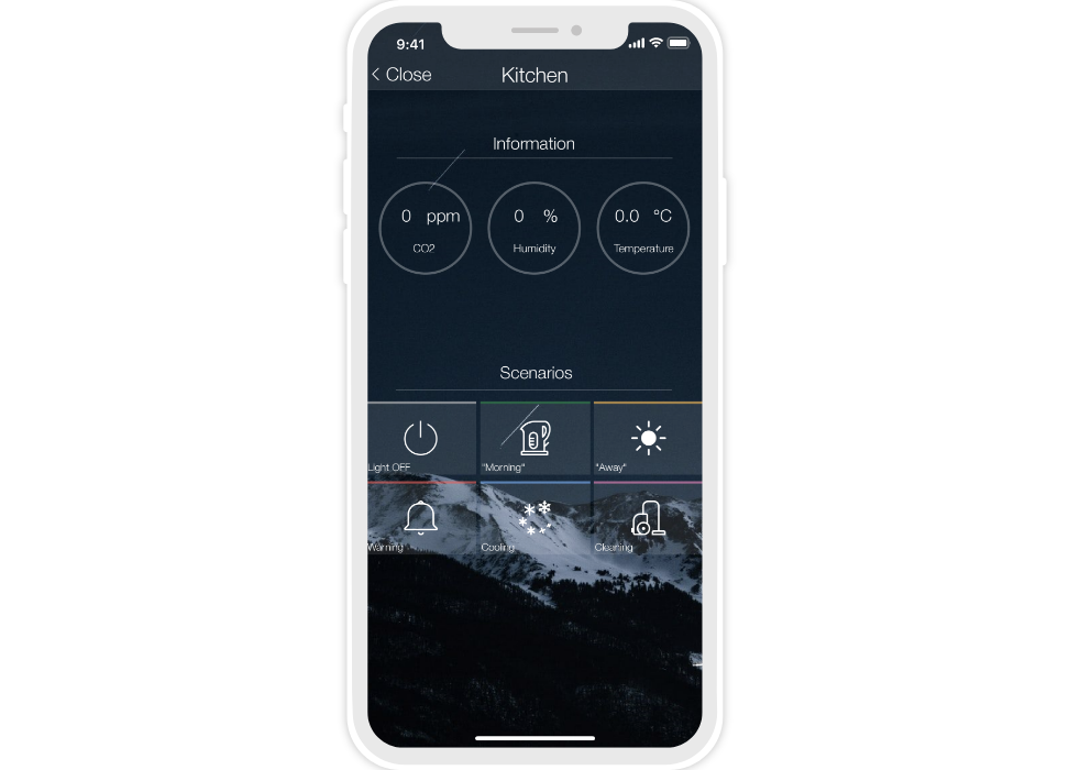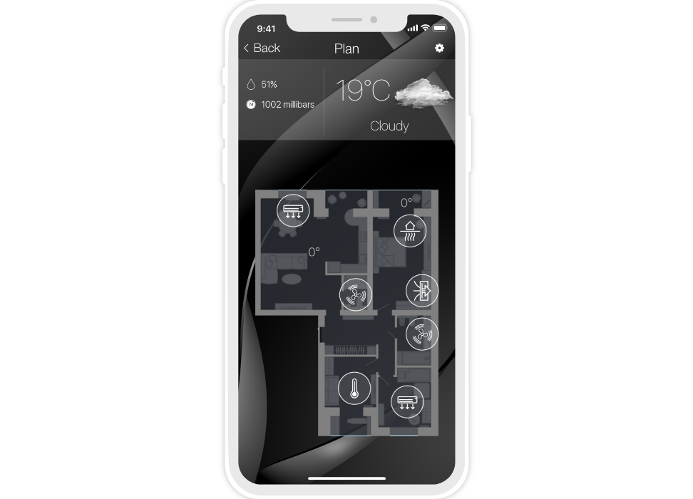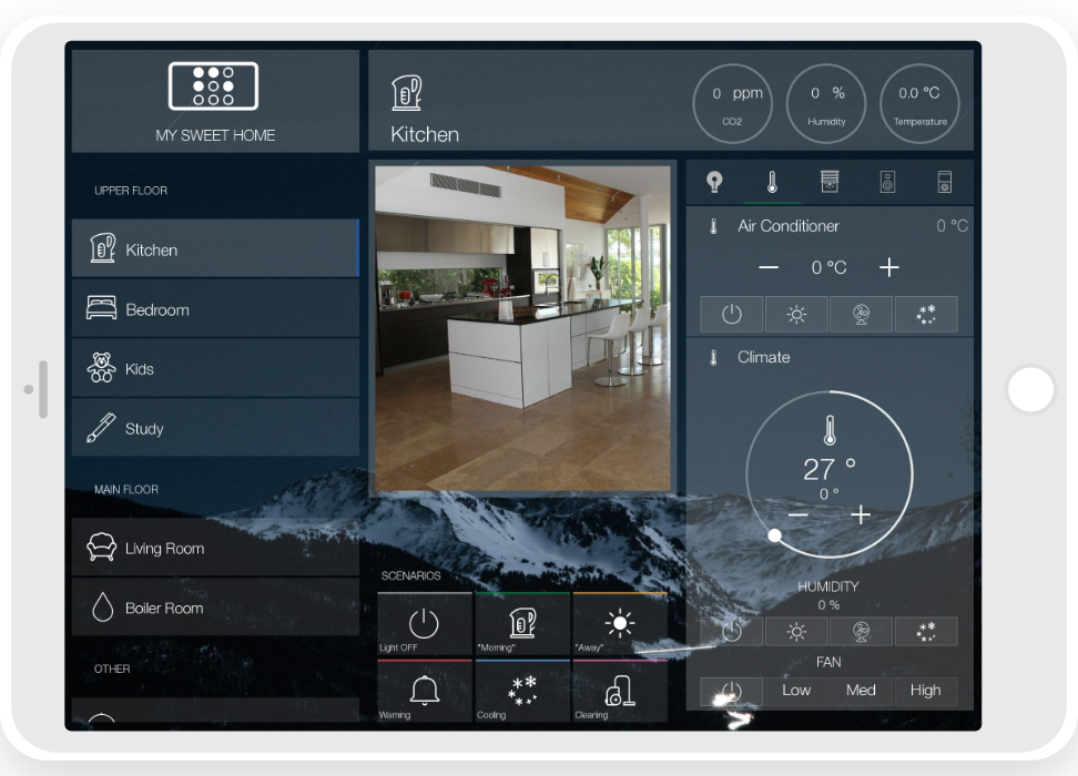 - info blocks of temperature, humidity, CO2 level in rooms;
